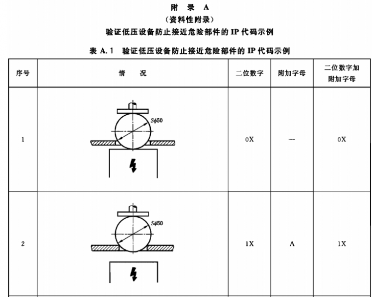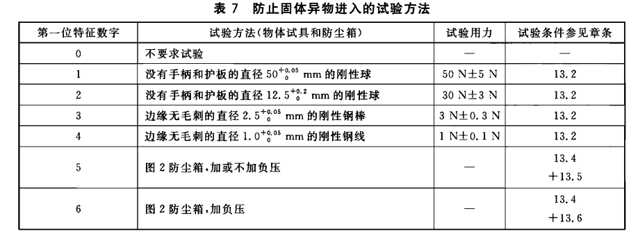 各類產品引用外殼防護等級的程度和方式,以及采用何種外殼,留待產品標準決定,對具體的防護等級所采用的試驗應符合本標準的規定,必要時,在有相產品標準中可增加補充要求??稍谟嘘P產品標準中作具體規定的細則見附錄B。