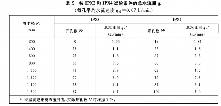 進行IPX1至IPX6的試驗,水溫與試驗時試樣的溫差應不大于5 K。如果水溫低于試樣超過5 K,